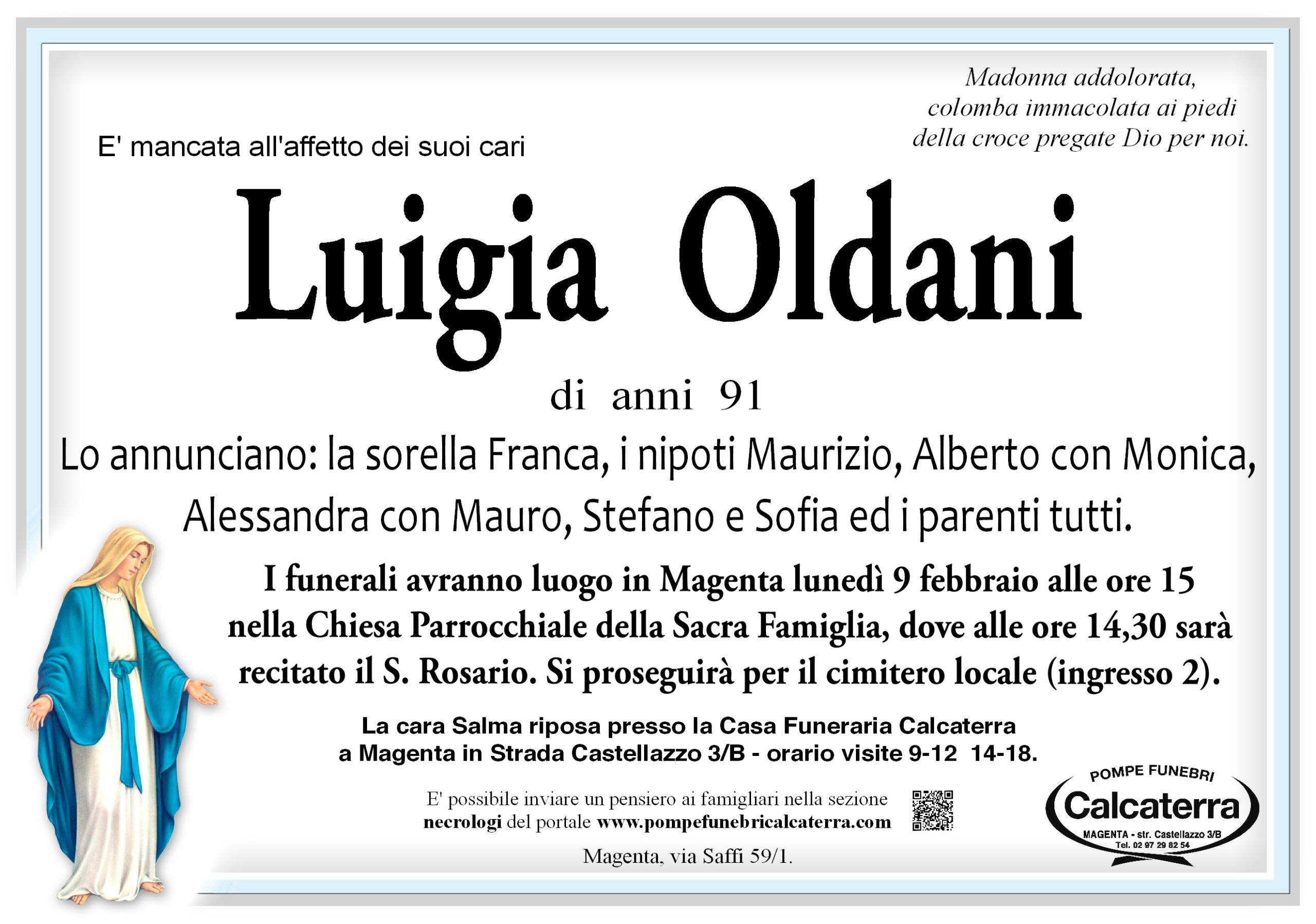 Con la costruzione della Casa Funeraria di Magenta, le Pompe Funebri Calcaterra sottolineano il loro ruolo di riferimento per tutta l’area, mettendo a disposizione della collettività, una struttura ormai indispensabile in virtu’ dei profondi cambiamenti avvenuti nella società moderna.